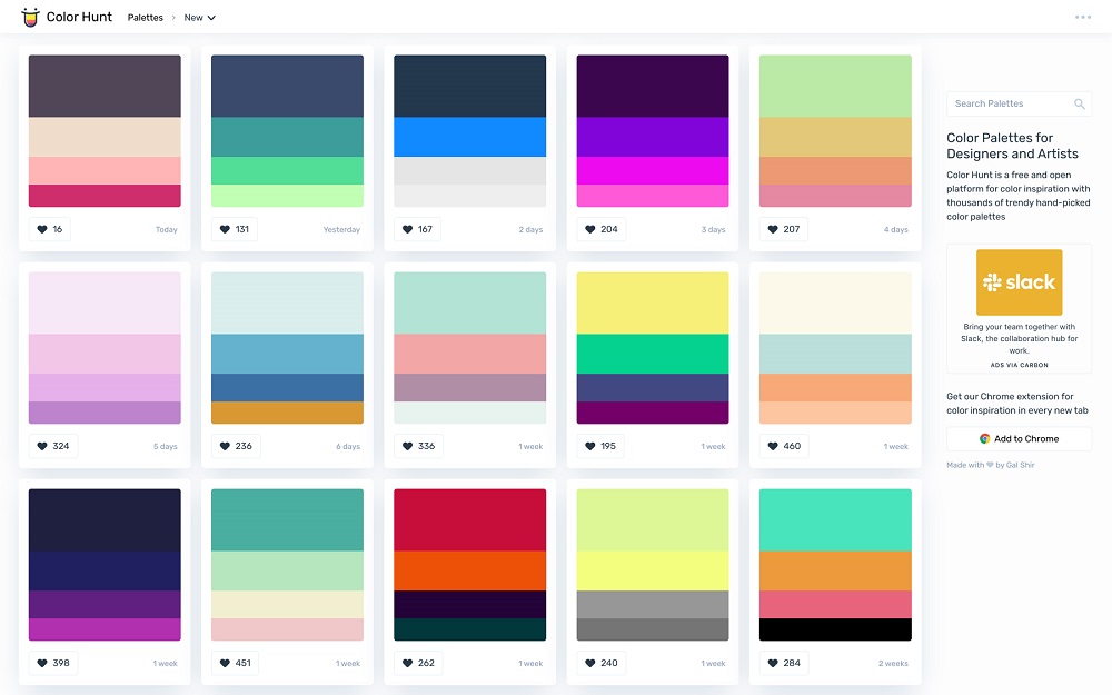 Đây là phần mềm hoàn toàn miễn phí, là 1 nền tảng khơi gợi nguồn cảm hứng sáng tạo với hàng nghìn bảng màu được chọn lọc thủ công hợp xu hướng. Color Hunt được xem là 1 phần mềm quốc dân được nhiều designer sử dụng và yêu thích.