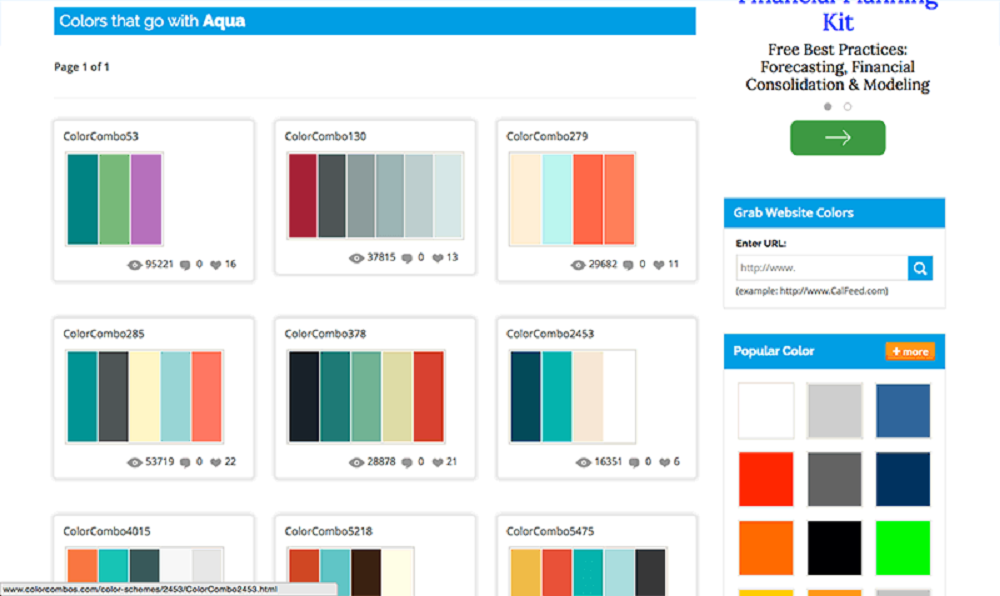 Colorcombos là một website cung cấp những bảng phối màu có sẵn cho phép Designer lựa chọn màu sắc một cách nhanh chóng. Với hàng trăm combo màu có sẵn trong thư viện, bạn chỉ cần click vào một bảng màu bạn thích và copy các mã màu: Hex, RGB, CMYK, HSV.