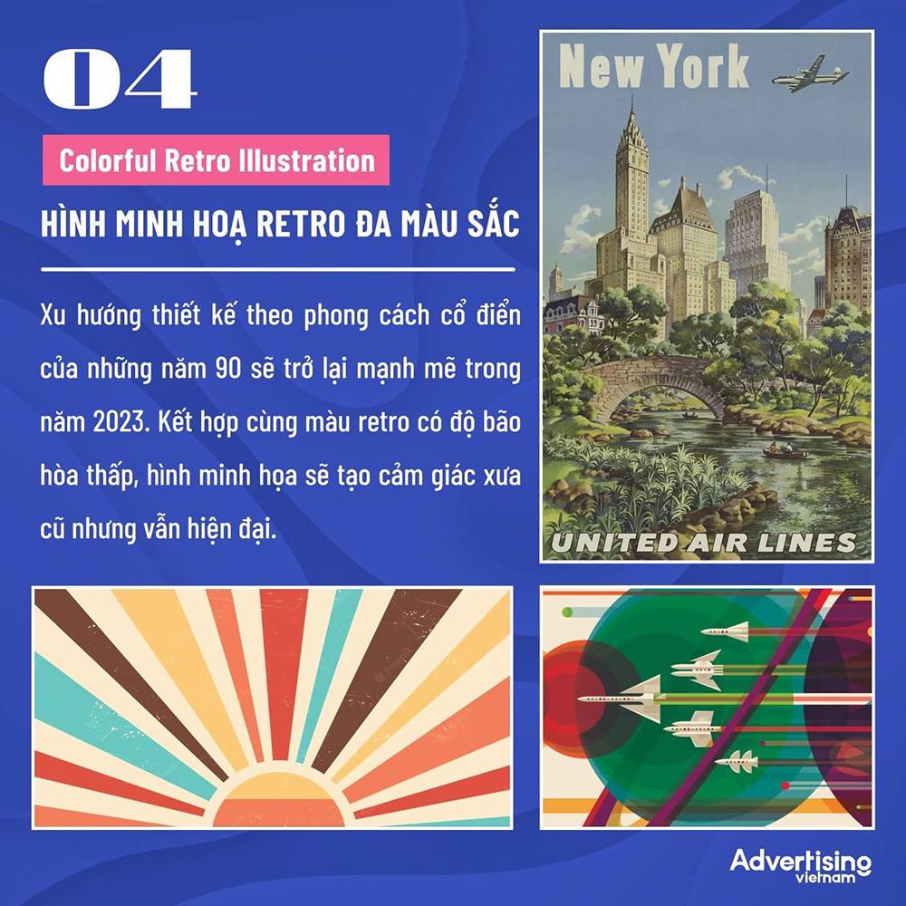Không chỉ là những hình ảnh tĩnh đơn thuần, giờ đây các thiết kế cần áp dụng nhiều kỹ xảo hay hiệu ứng mới lạ như thực tế ảo, thực tế tăng cường,... để trở nên nổi bật trên thị trường, gây ấn tượng và thu hút hiệu quả đối tượng mục tiêu. Ngoài ra, tiếp nối cảm hứng hoài cổ cùng phong cách đa màu sắc năm 2022, ngành thiết kế đồ hoạ năm 2023 vẫn tiếp tục chứng kiến sự xuất hiện của xu hướng retro hay phong cách dân gian.